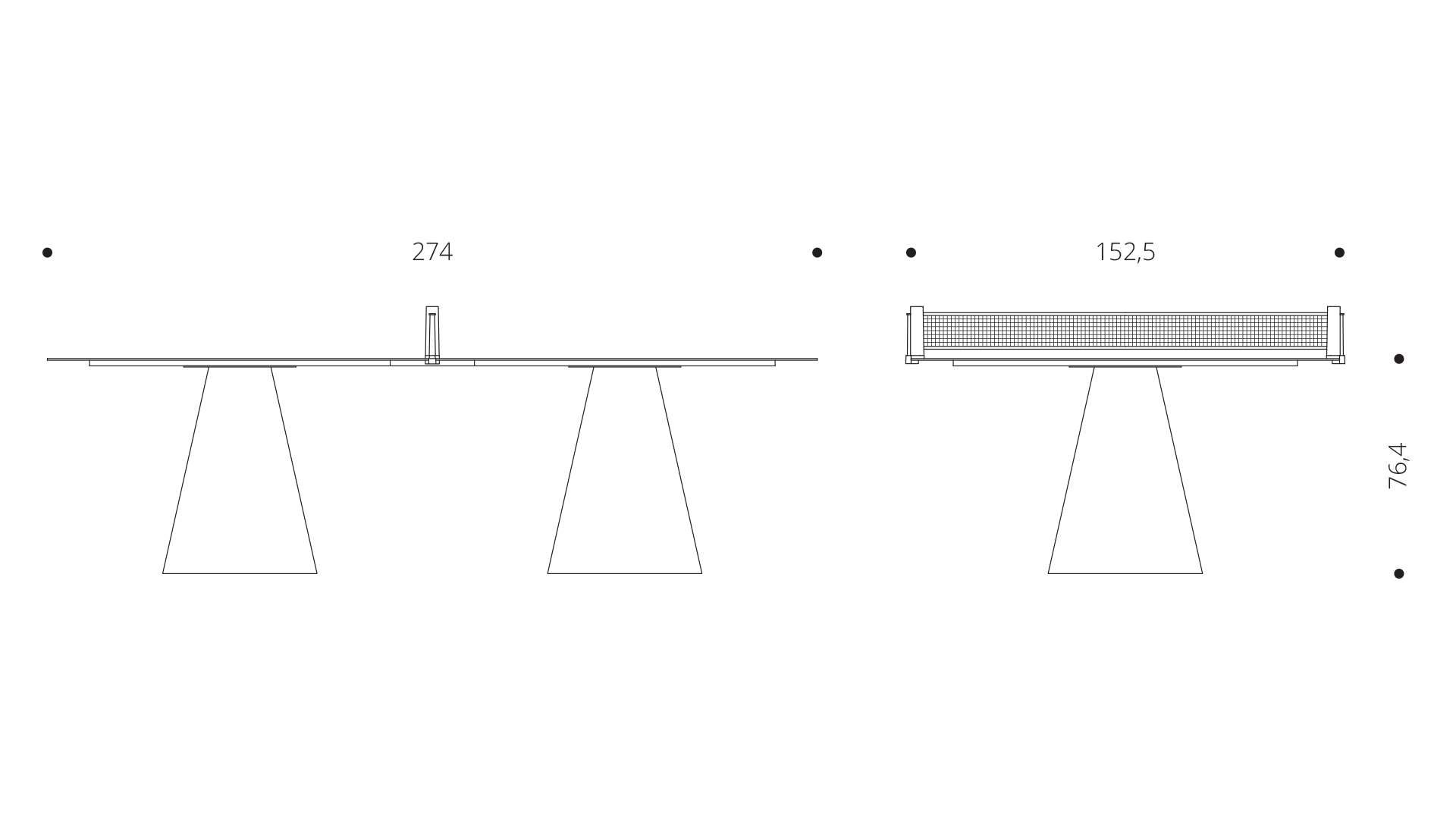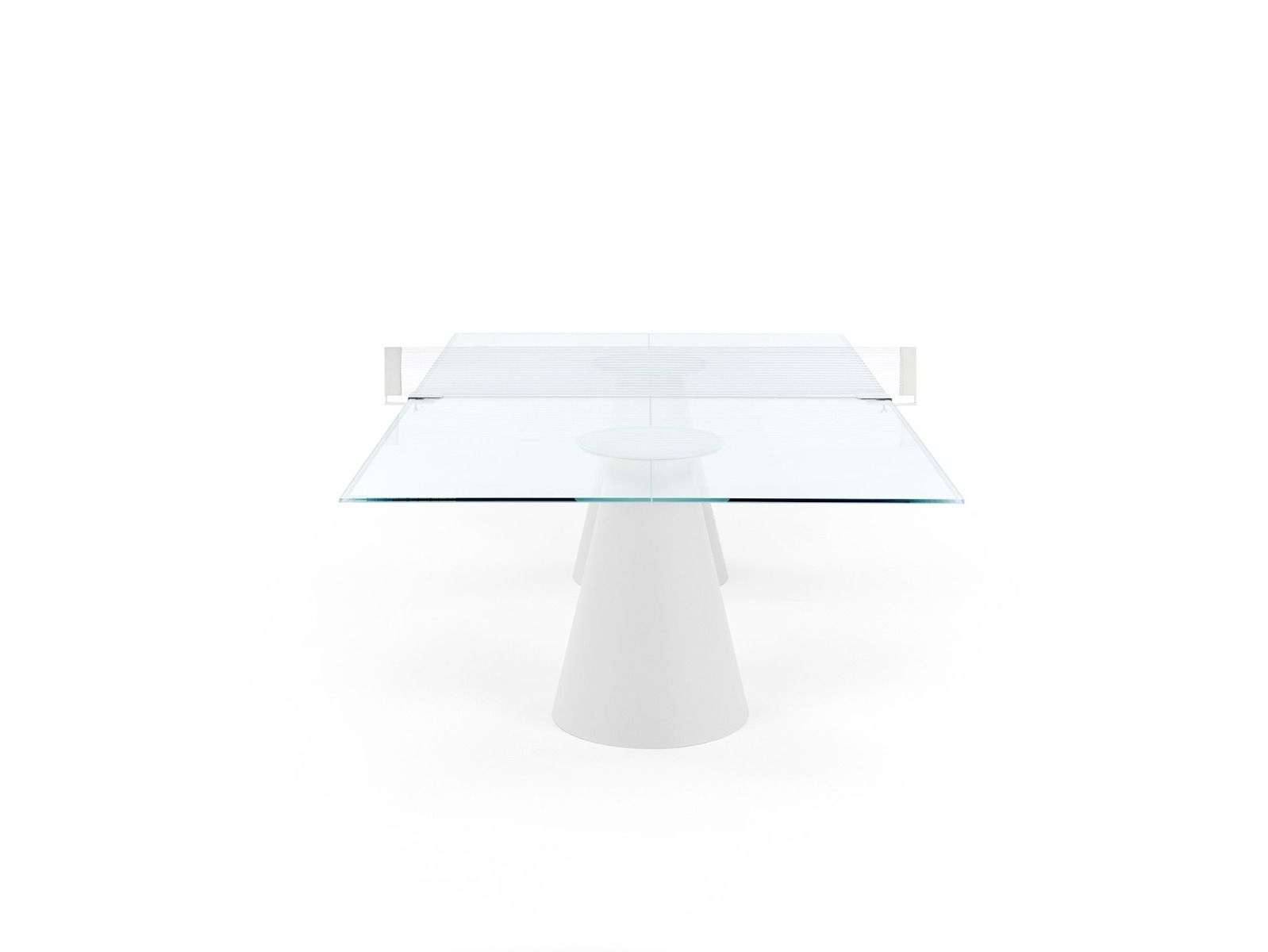 The Busan Glass Ping-pong table is the third born after the great success of Busan indoor and Busan outdoor. The iconic conical legs, available in black and white, with a brilliant transparent playing surface and with the playing field lines silk-screened directly into the glass, make the table slim and elegant. It can be separated in such a way as to have two beautiful square crystal tables.
