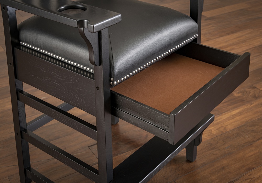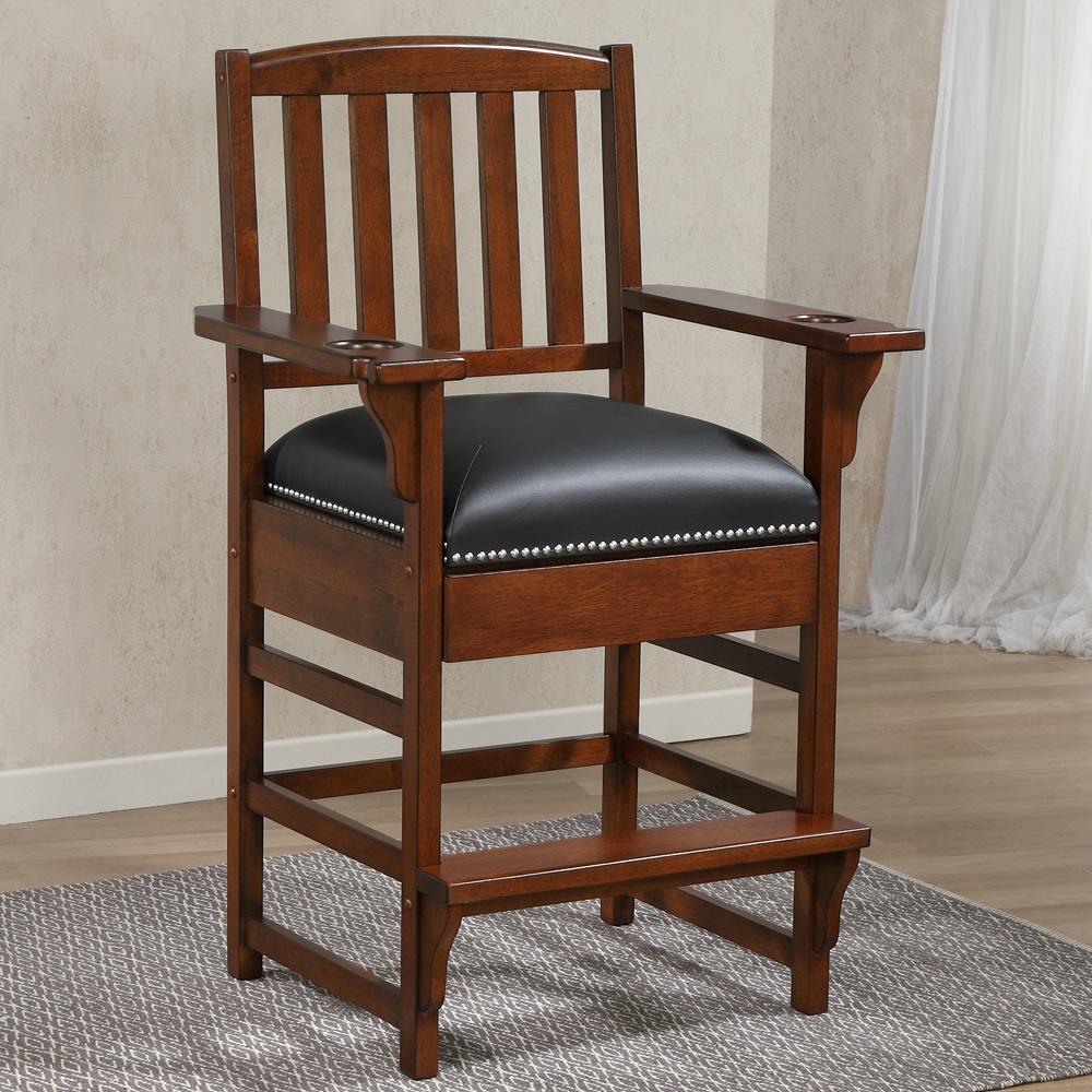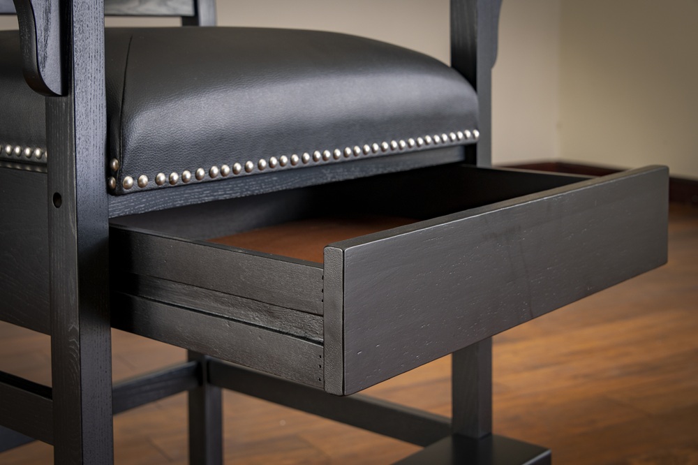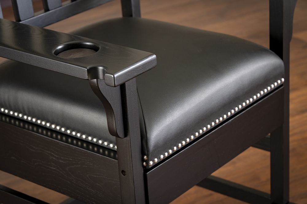 Conçue pour refléter son nom, cette élégante chaise de spectateur vous permettra de ne rien manquer du spectacle. La King Chair est dotée d’un large dossier à lattes, d’accoudoirs avec porte-gobelets et encoches pour queues de billard, ainsi que d’un tiroir dissimulé pour le rangement. Disponible en quatre finitions : Black, Glacier, Riverbank, et Suede.