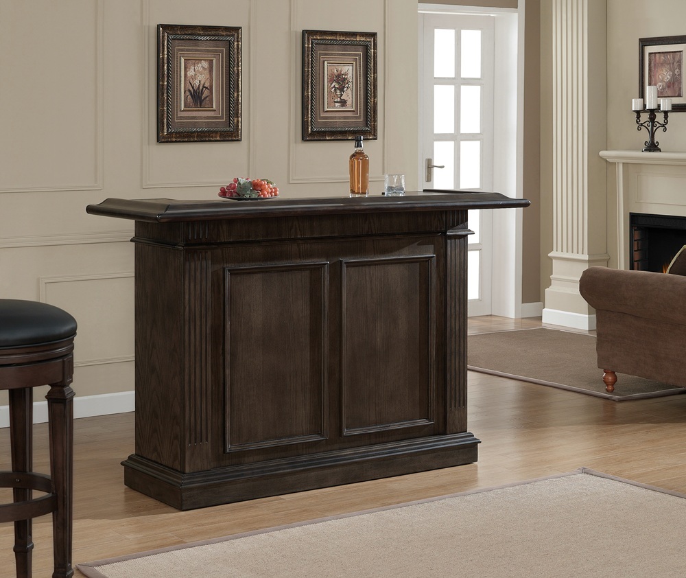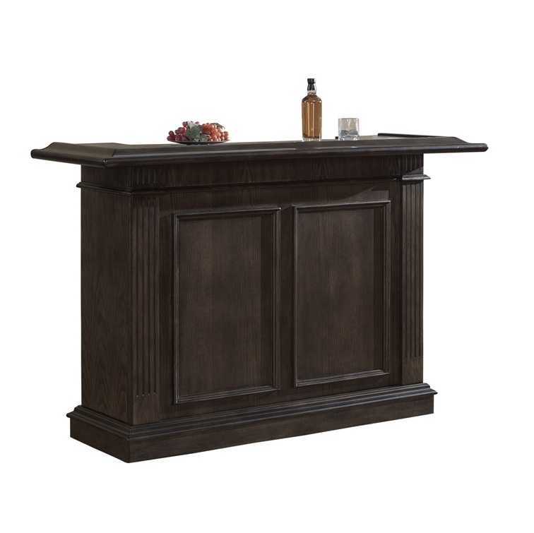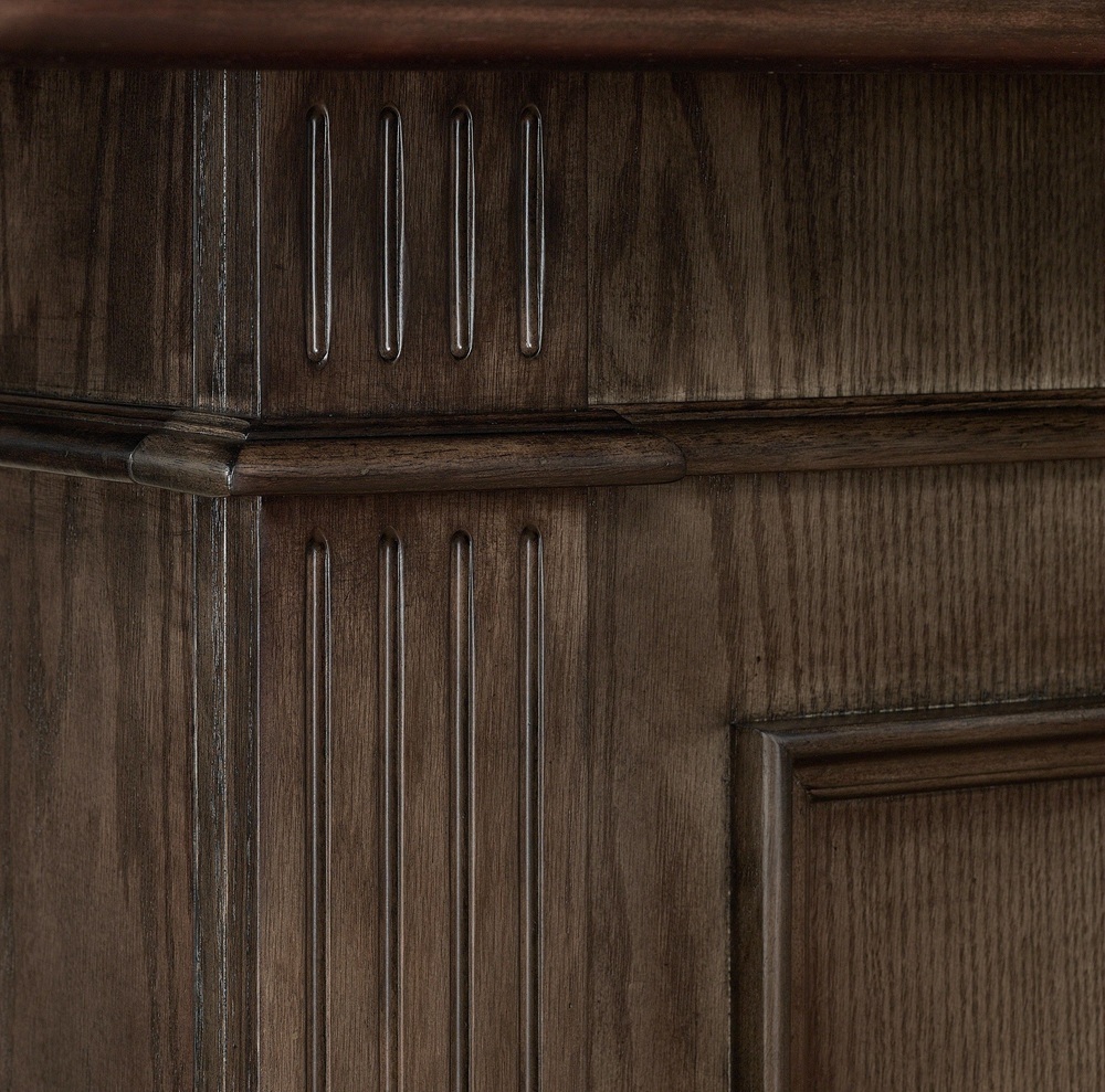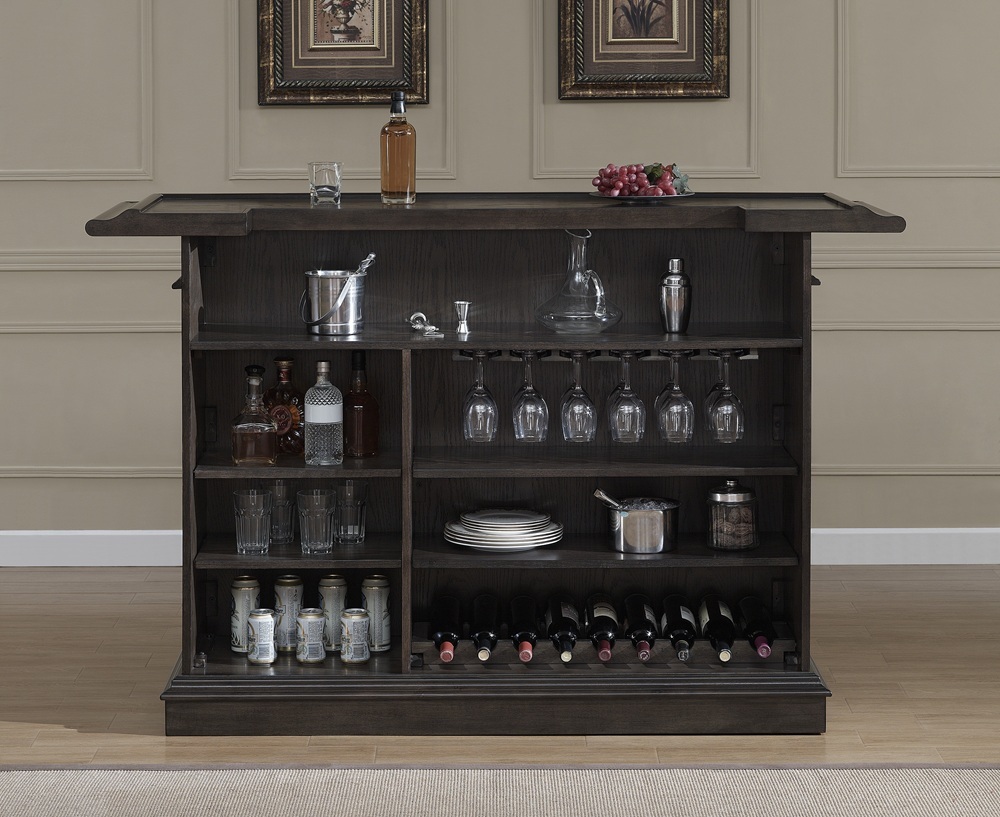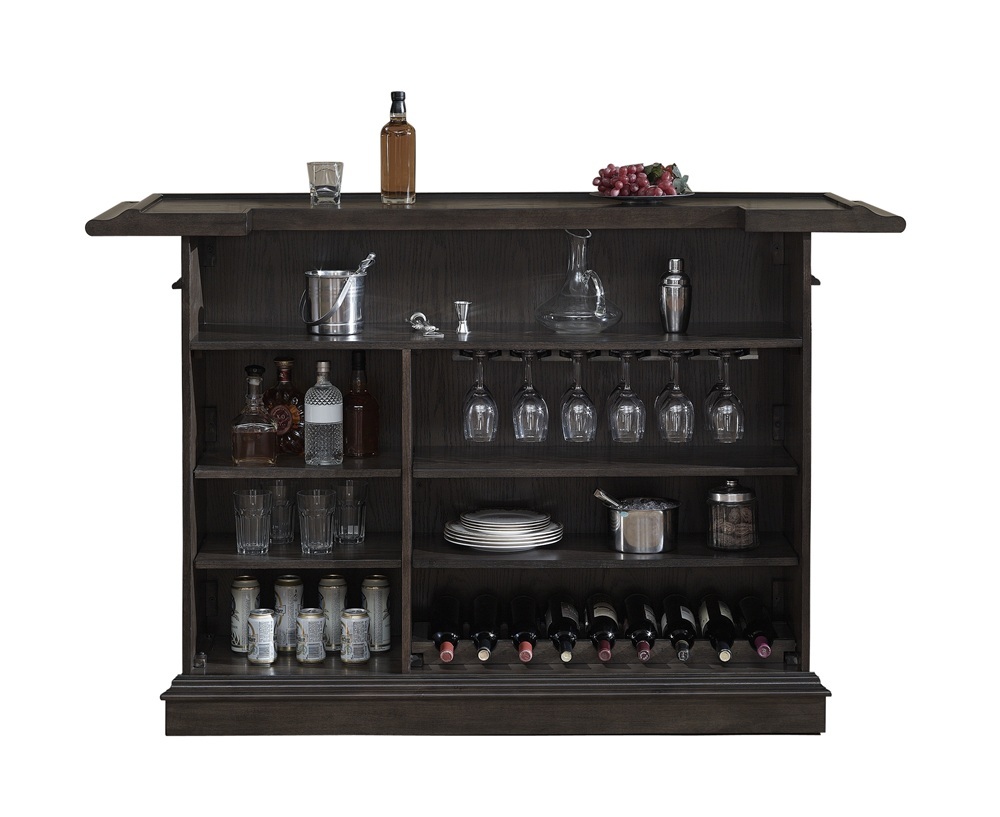 Con acabado Riverbank, este elegante bar de 180 cm cuenta con portacopas, botelleros y amplios estantes de almacenamiento. Con amplio espacio de almacenamiento, paneles decorativos y molduras, sin duda será apreciado por su forma y belleza.