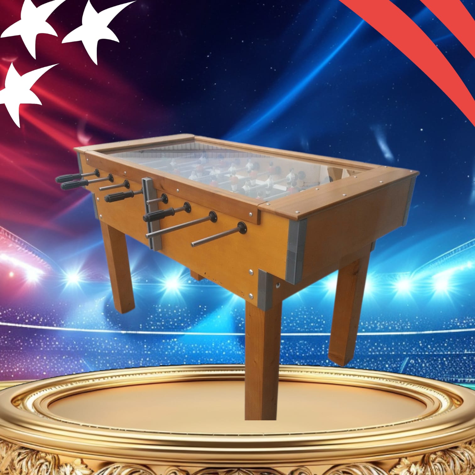 Em opçao: Côr da madeira, côr das equipas, moedeiro, punhos de madeira, etc.